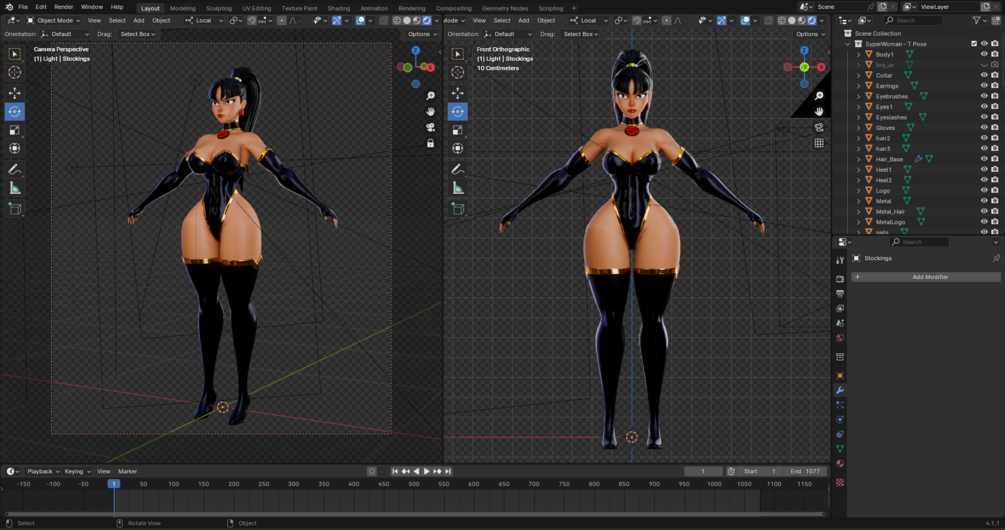 Superwoman - T pose/STL and Blender file / renders and Videos